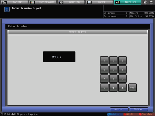 Appuyez sur [N° de port] et saisissez le numéro de port si nécessaire.