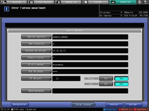Appuyez sur [Enregistrer] pour enregistrer le serveur WebDAV saisi.