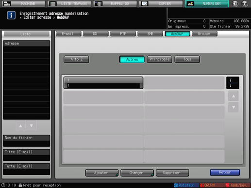 Pour revenir à l'écran [NUMERISER], appuyez sur [Adresse].