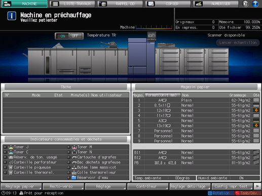 Pendant la mise en température de la machine à l'allumage, vous pouvez définir les conditions de copie et lancer la numérisation de sorte que la machine peut lancer l'impression dès que le moteur est prêt.