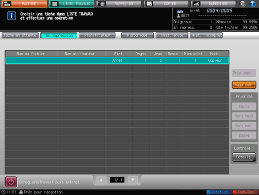 L'écran [En impression] s'affiche.
