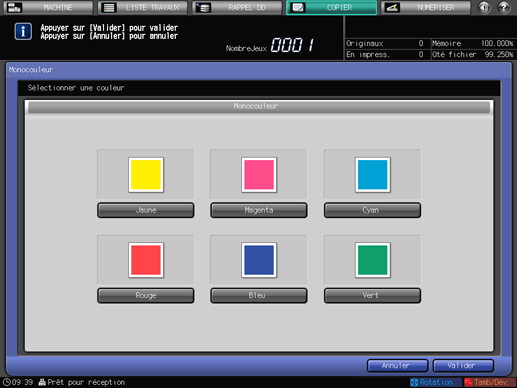 [Monocouleur] : copie monochrome dans une des 6 couleurs [Jaune], [Magenta], [Cyan], [Rouge], [Bleu], [Vert].