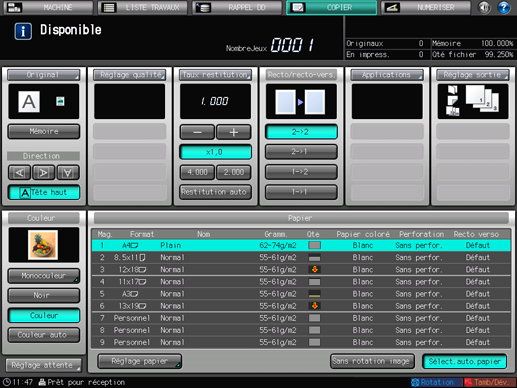 Appuyez sur l'onglet [COPIER] pour afficher l'écran [COPIER].