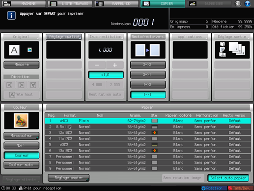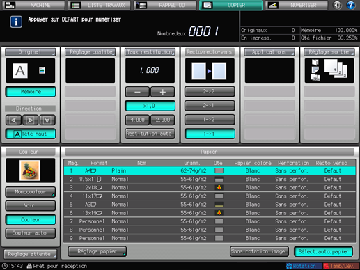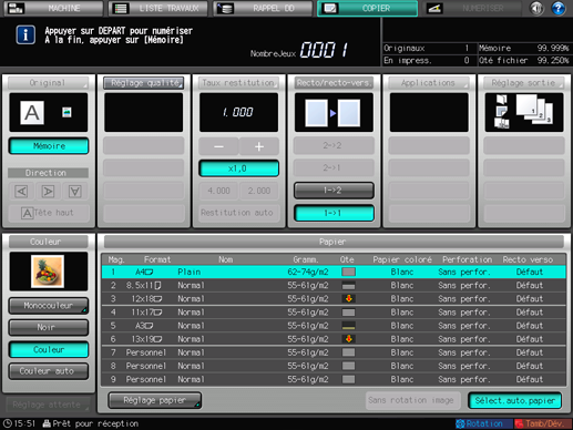 L'indicateur de mémoire situé dans le coin supérieur droit de l'écran [COPIER] permet de contrôler la mémoire restante.
