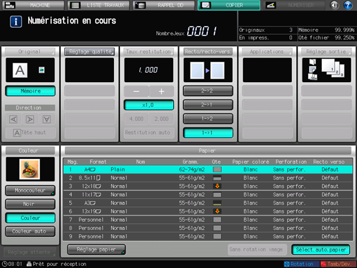 La machine lance la numérisation de l'original.