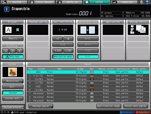 [Restitution auto] est incompatible avec [Sélect.auto.papier] mais Rotation image est disponible.