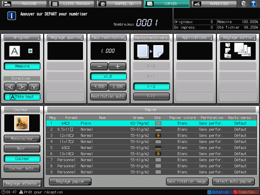 Le réglage de la machine adapte automatiquement le [Type de reliure] de [Réglage sortie] des copies à celui de l'original.