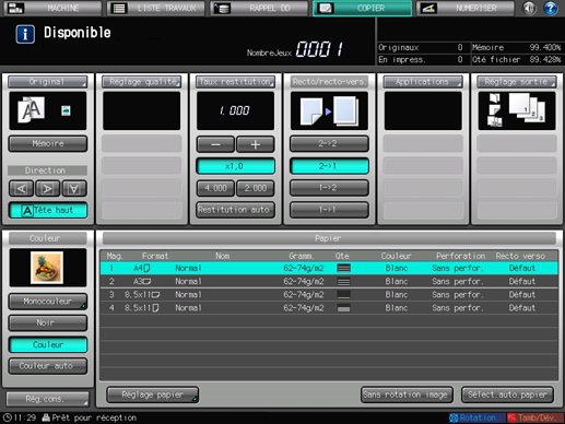 Pour en savoir plus sur le réglage du sens de reliure d'originaux 2 faces, voir Sens Reliure : sélection du sens de reliure d'un original 2 faces.