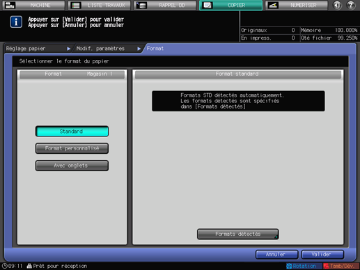 Si le format [Standard] est sélectionné, la machine détecte automatiquement le papier de format standard chargé dans le magasin.