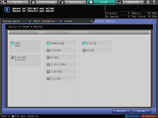 Appuyez sur [Formats détectés]. L'écran [Formats détectés] s'affiche.