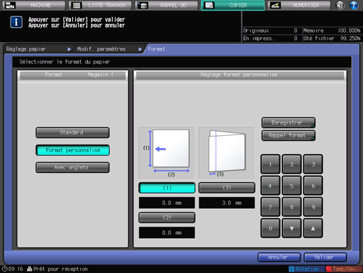 Appuyez sur la touche numérique du format personnalisé à utiliser, puis appuyez sur [Valider].