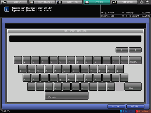 Appuyez sur [Valider] pour finaliser le réglage. Pour annuler la modification, appuyez sur [Annuler].