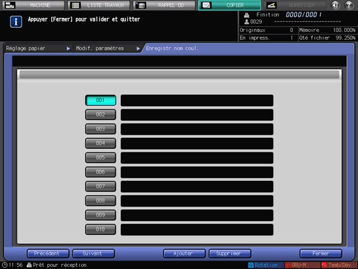 Pour supprimer un nom de couleur enregistré, appuyez sur la touche numérique à supprimer, puis appuyez sur [Supprimer].