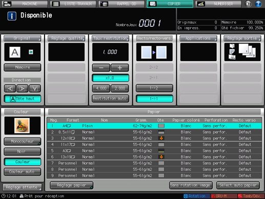 La fonction [Sélect.auto.papier] peut être inopérante en raison des spécifications papier du magasin, même si le papier chargé dans le magasin est au format sélectionné. Pour en savoir plus, voir Sélection papier auto : réglage des conditions papier pour le chargement auto magasin.