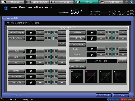 Appuyez sur [Fermer] sur l'écran [Réglage qualité] pour revenir à l'écran [COPIER].