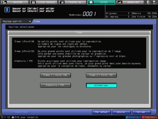 [Densité copie] : voir Densité copie : Réglage de la densité copie.