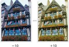 | Balance couleurs : toutes les zones de densité de Jaune Réglez le niveau de couleur de chaque zone de densité (Claire, Moyenne et Foncée) de Jaune dans une plage comprise entre -10 et +10.