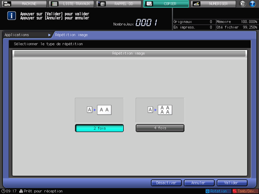 Appuyez sur [Valider] sur l'écran [Applications] pour revenir à l'écran [COPIER].