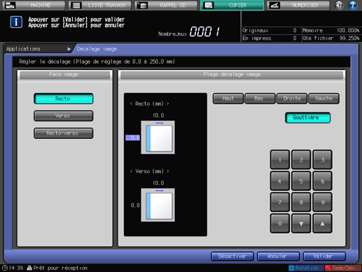 La direction du décalage doit être déterminée par la [Direction] spécifiée sur l'écran [COPIER].