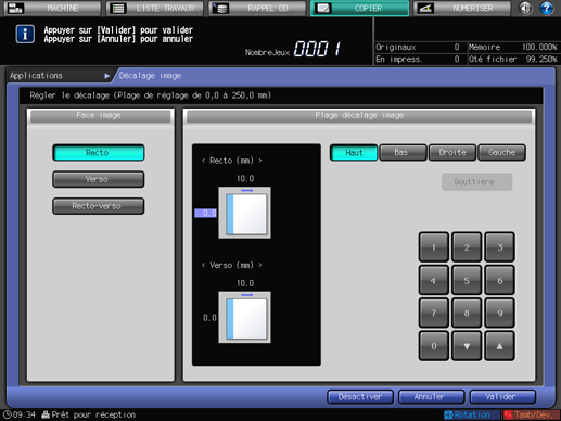 Pour avoir le même décalage des deux côtés des copies recto-verso, sélectionnez [Recto-verso].