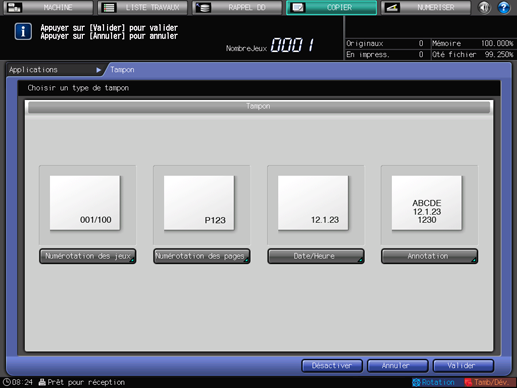Pour en savoir plus sur le réglage fin, le numéro de départ de numérotation et les caractères, voir Réglage détaillé du tampon.