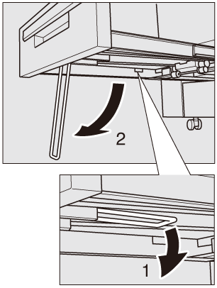 Lorsque vous utilisez le bac de réception de la piqueuse à cheval, assurez-vous de le sortir complètement. Sinon, les jeux n'auraient pas été envoyés au bac de réception. Ouvrez le support situé sous le bac de réception de la piqueuse à cheval pour le sortir complètement.