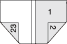 Chargez du papier de format personnalisé correspondant à la longueur du corps et à la largeur du corps x 2 + épaisseur du corps (1 mm à 30 mm) + (5 mm à 40 mm de largeur de massicotage si le mode Massicotage est spécifié)