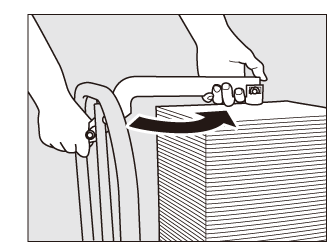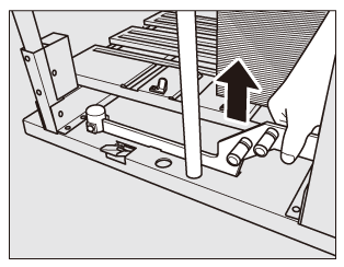 Tirez la butée papier vers le haut comme illustré, puis tournez-la en direction de la poignée du chariot pour sortir la butée papier du support papier.