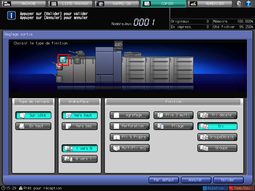 Sélectionnez [Tri] ou [Groupe] sous [Finition].