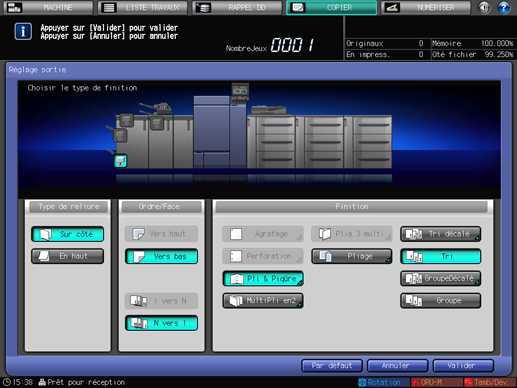 Sélectionnez [Pli & Piqûre] ou [MultiPli en2] sous [Finition].