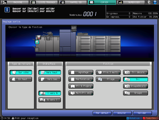 De même, le mode [Vers haut] est sélectionné automatiquement en combinaison avec [Recto vers intérieur], et [Vers bas] en combinaison avec [Recto vers extérieur].