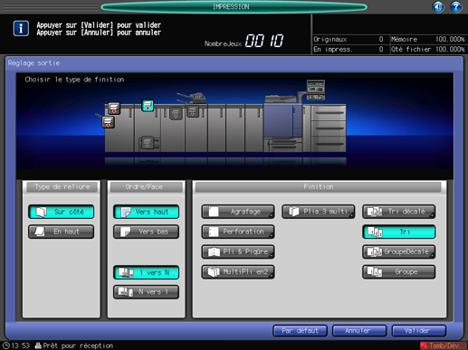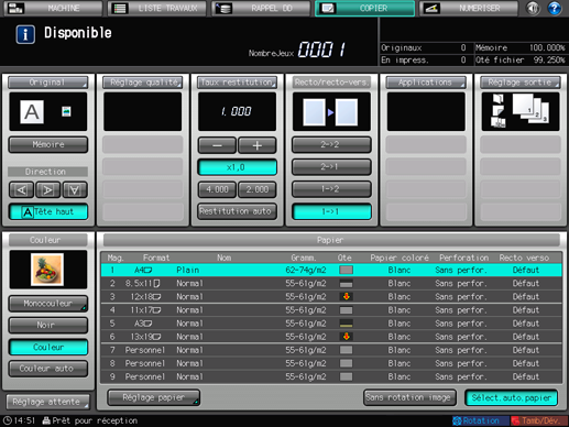 Appuyez sur [Valider] sur l'écran [Réglage sortie] pour revenir à l'écran [COPIER].