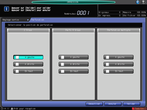 L'écran [Perforation] s'affiche.