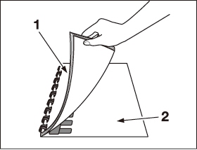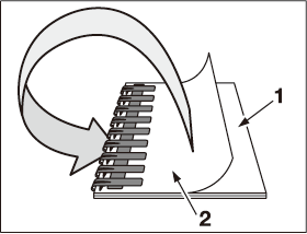 Pour améliorer l'apparence du livret relié, retournez la couverture dos de façon à masquer le dos de la pièce de reliure entre la couverture dos et la dernière page du corps. (1 : couverture, 2 : dos)