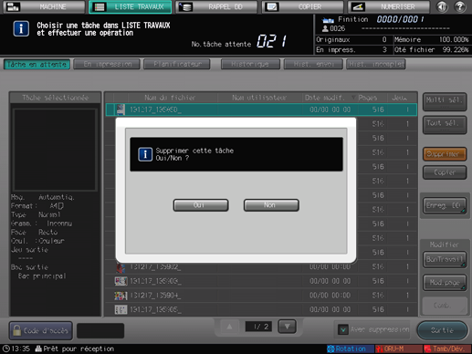 La tâche sélectionnée est supprimée et l'écran [Tâche en attente] réapparaît.