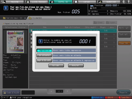 Le dialogue qui s'affiche permet de sélectionner [Impression], [En attente] ou [Impr & En att.].