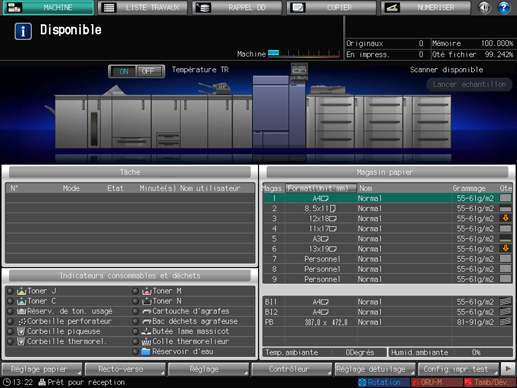 L'écran [Hist. incomplet] de l'écran [LISTE TRAVAUX] fournit la liste de l'historique incomplet.