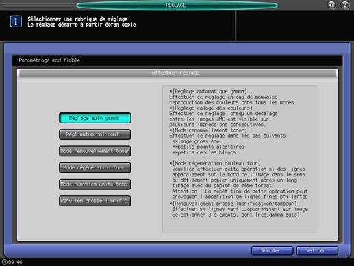 Appuyez [Réglage auto gamma] et appuyez sur [Valider].