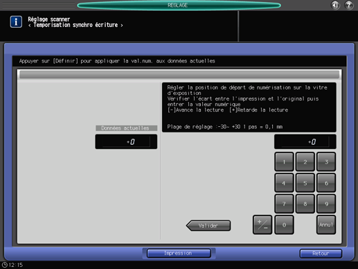 Si un réglage est nécessaire, appuyez sur [Retour réglage] pour revenir à l'écran [Temporisation synchro écriture].