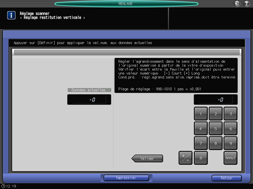 Appuyez sur [Valider] pour modifier la valeur actuelle.
