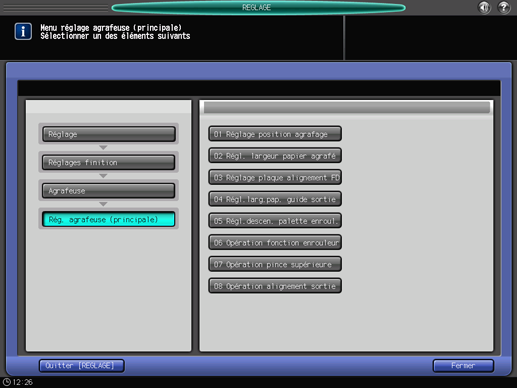 L'écran [Menu réglage agrafeuse (principale)] réapparaît.