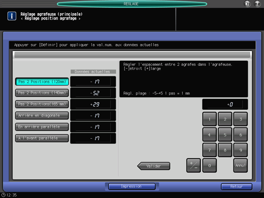 Appuyez sur [Retour réglage] pour revenir à l'écran [Réglage position agrafage].