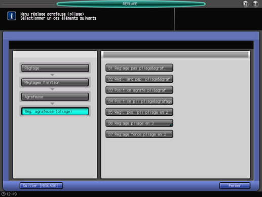 L'écran [Menu réglage agrafeuse (pliage)] réapparaît.