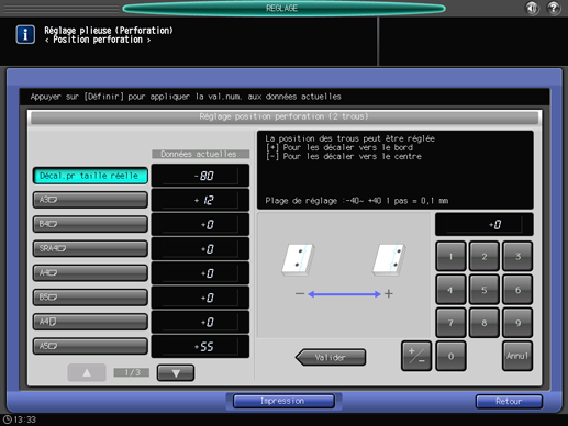 Si un réglage est nécessaire, appuyez sur [Retour réglage] pour revenir à l'écran [Position perforation].