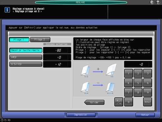 Sélectionnez [Pliage 2] et utilisez le clavier de l'écran tactile pour entrer la valeur de réglage.