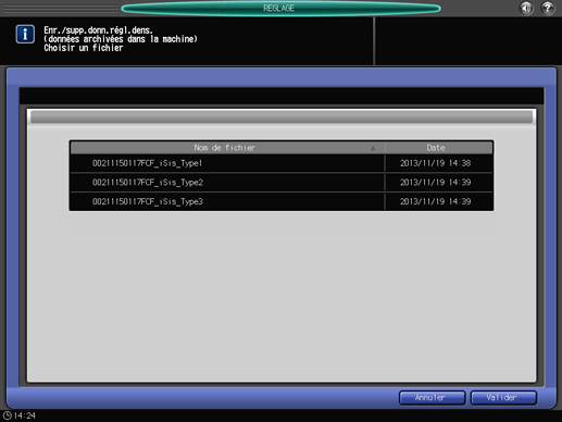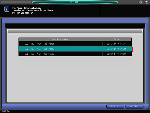 Sélectionnez le nom de fichier des données à enregistrer, puis appuyez sur [Valider].