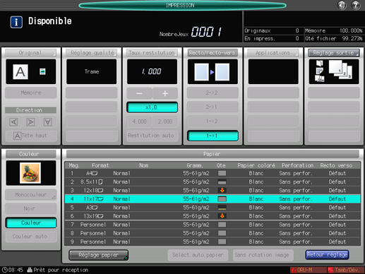 Appuyez sur [Retour réglage] pour revenir à l'écran [Enregistrement données uniformité densité].