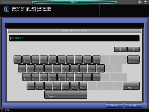 Entrez le nom de profil souhaité, puis appuyez sur [Valider].