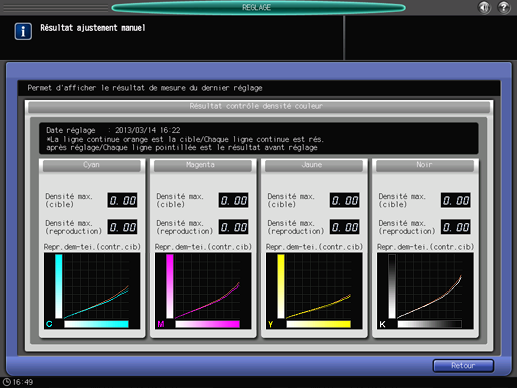 Appuyez sur [Retour] pour revenir à l'écran [Contrôle manuel de la densité couleur].