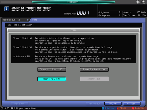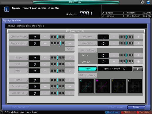 Le réglage manuel permet de régler chaque trame prédéfinie. De plus, vous pouvez sélectionner un type de papier sortie.